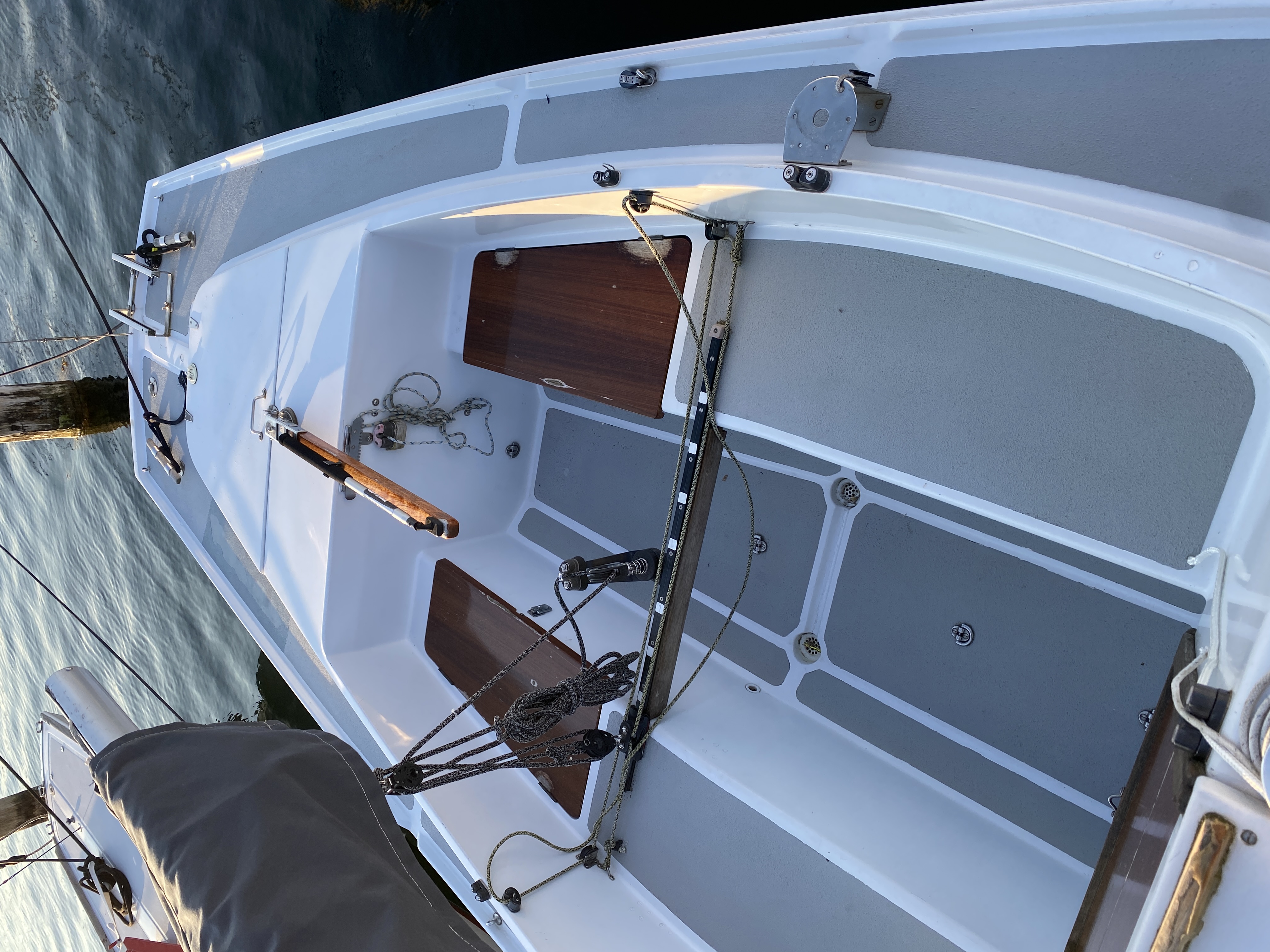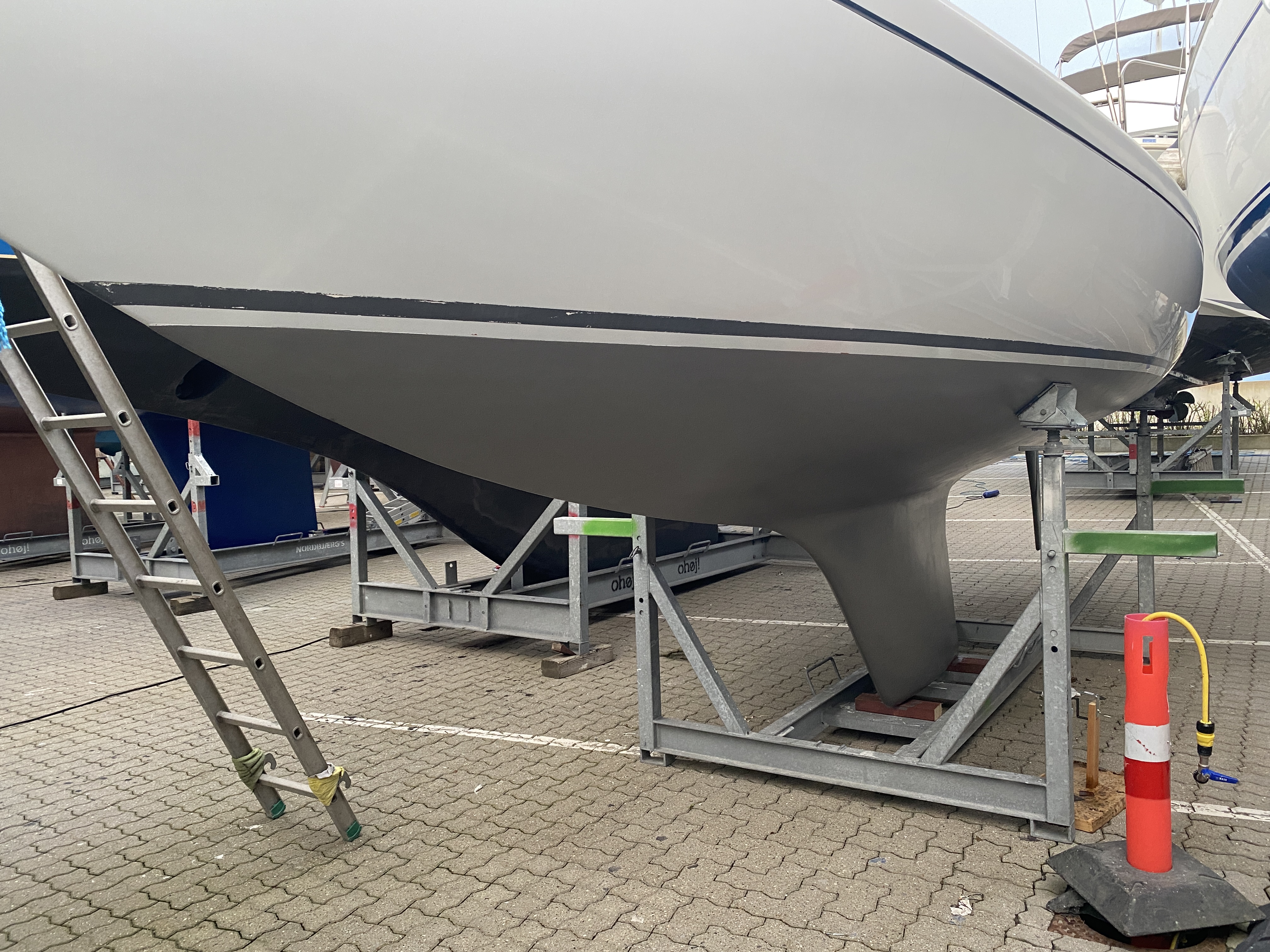 Der medfølger to storsejl, to forsejl, anker, Epropulsion el påhængsmotor (nypris 45.000kr).